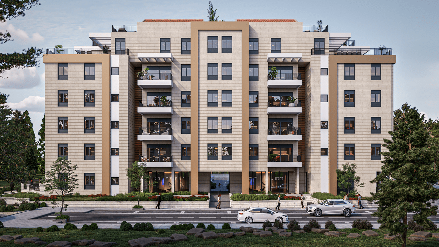 Ces appartements offrent des volumes bien pensés, une distribution fonctionnelle et des terrasses agréables, parfaitement adaptées à une vie familiale dans un quartier neuf et structuré de Ra’anana.